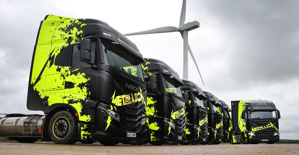 IVECO provided a sustainable multi-energy convoy to move Metallica and equipment between venues, including 10 IVECO S-Way heavy-duty LNG and 4 IVECO S-Way trucks powered by renewable diesel.